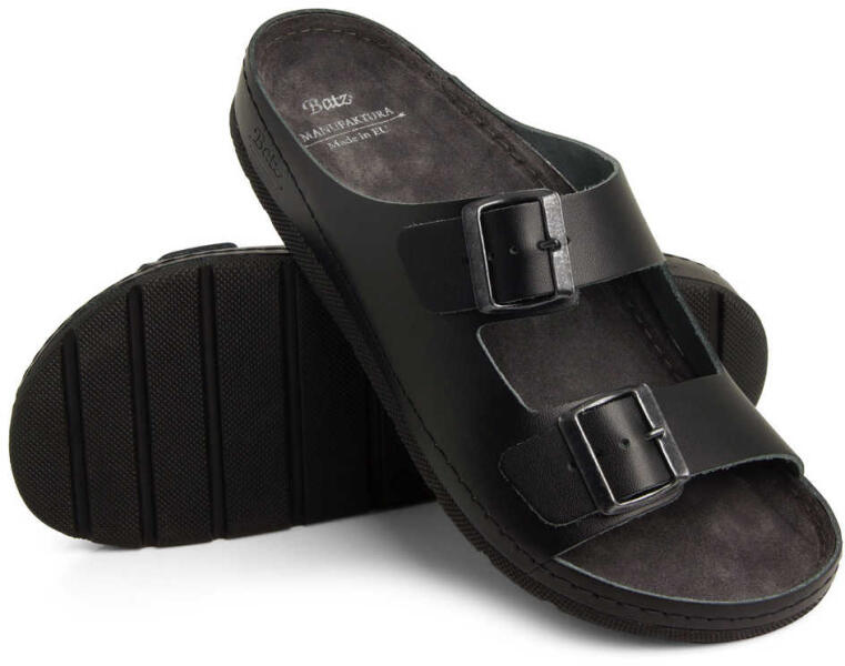 Batz férfi egészségügyi papucs - Férfi egészségügyi papucs Zeno bőrből készült, anatómiailag formázott talppal és csúszásmentes talppal rendelkezik. Emellett 2 állítható tépőzáras csattal rendelkeznek, amelyek segítségével bármilyen lábfejre illeszkednek. Anyagok: