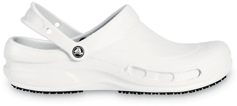 Crocs Work Bistro Clog munkapapucs Szakácsoknak, konyhai és egészségügyi dolgozóknak kifejlesztett, rugalmas és tartós Croslite alapanyagból készült papucs, ami ellenáll a baktériumoknak és szagsemleges. A legtöbb munkaügyi előírásnak megfelelő, zárt sarokrésszel rendelkezik, valamint a lábközépcsontok felett nagyobb anyagvastagság védi a lábat a külső behatásoktól. Talpa speciális Crocs Lock bordázással készült, mely csúszásmentes, így olajos, nedves, zsíros talajon is megfelelő tapadást biztosít. Az ergonomikus talpágy és saroktámasz elvezeti a lépés során kialakult energiákat, csökkenti az ízületek terhelését. Belső talpán körkörös irányban végigfutó masszírozó bütykök fokozzák a vérkeringést, Crocs Comfort fejlesztése és harántemelő boltíve pedig egész napos kényelmet biztosít. Könnyen tisztítható akár szappanos vízzel is. Az ASTM F2913 tesztelve, CE tanúsítvánnyalMegfelel, avagy meghaladja az EN ISO 20347:2012, OB, SRC előírásokat Croslite alapanyag tulajdonságai:szabadalmaztatott technológia pehelykönnyű felveszi a láb alakját ellenáll a kellemetlen szagoknak, könnyen fertőtleníthető nem hagy anyagnyomot a padlón