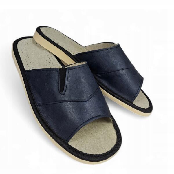 Férfi Papucs, Bőr Papucs Sötétkék 43+ Ajándék (KAPCIE MĘSKIE GRANATOWE ZE SKÓRY)