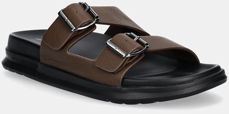Tommy Hilfiger bőr papucs D DENSITY HILFIGER LTH SAND barna, férfi, FM0FM05414 - barna Férfi 43