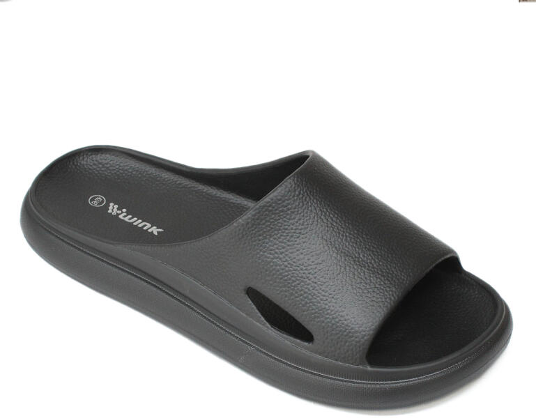 A Wink fekete papucs tökéletes választás a meleg hónapokra, a kényelmet és stílust kedvelő férfiak számára. A kényelmet szolgáló funkciók között szerepel a láb ívét támogató kialakítás, mely hosszabb viselet esetén is megtartja komfortérzetét. A strapabíró anyagból készült talp stabil járást biztosít, a csúszásmentes kialakítás pedig megelőzi a baleseteket.